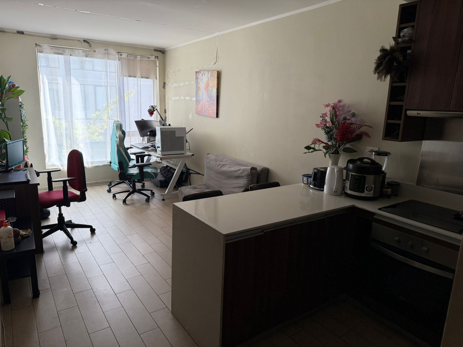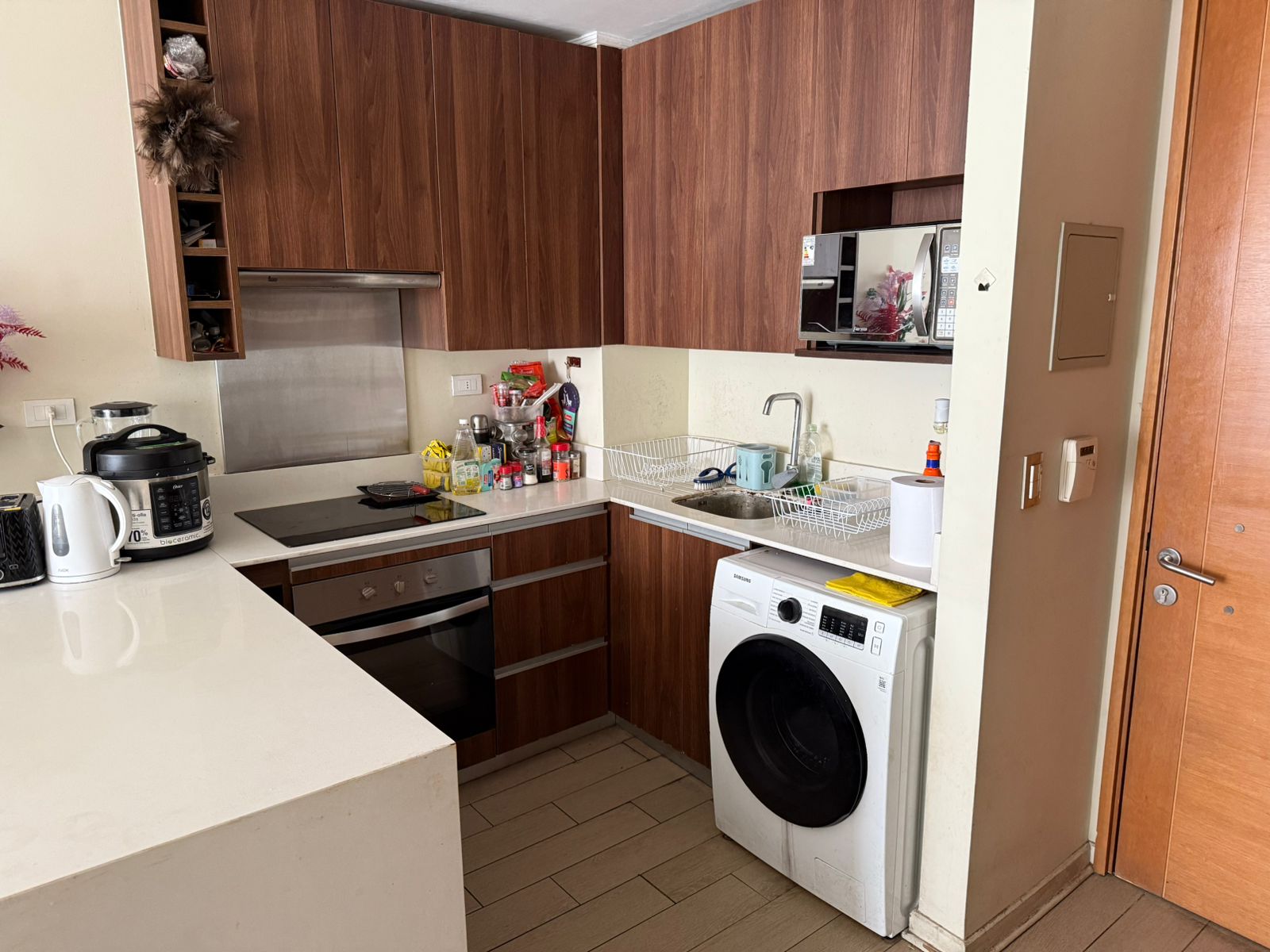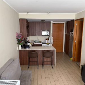 Precioso departamento en condominio, amplio living-comedor integrado a cocina amoblada, 1dormitorio suite – walk in closet. Estacionamiento y bodega subterráneos.